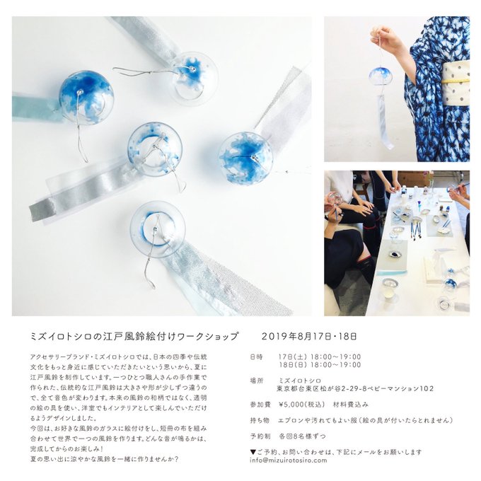 江戸風鈴ワークショップも実施。予約受付中です!アクセサリーとイラストのコラボをお楽しみください✨