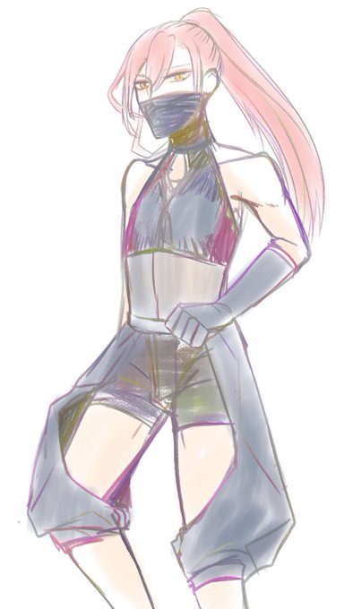 新刊とは全然関係ないけど、ニンジャ系キャラのこういう防御力ゼロの衣装好きです。(でもちょっとこういう感じの衣装にしようとは思ってた)(裏表紙にイラストつけたかった)