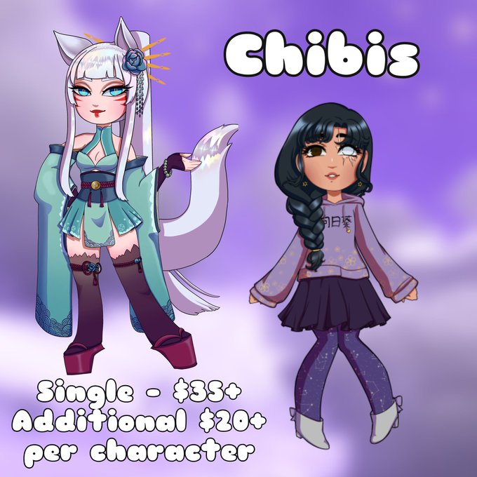 For this round of commissions, I’m mostly focusing on some cuter stuff—icons, chibis, and more cartoony characters! If any of these styles catch your attention or you’re interested, shoot me a DM!