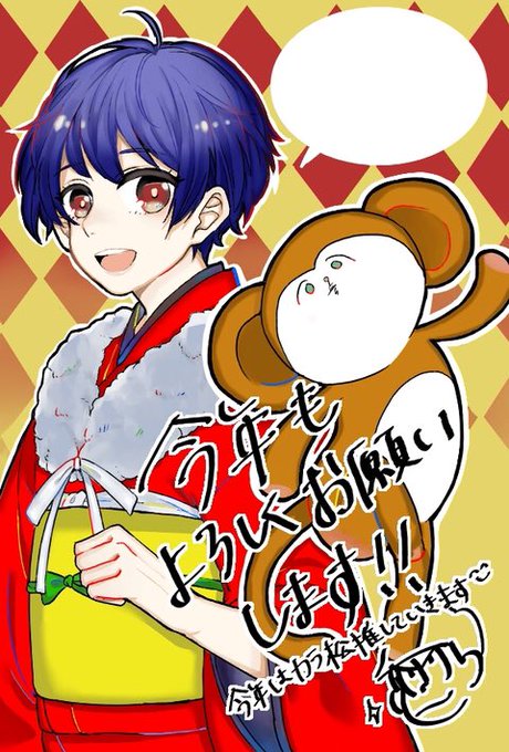 #過去絵を投げて絵を描いた気になろうキャンペーン 今年描いた年賀状でもぺたり