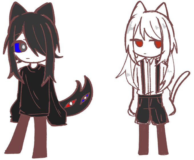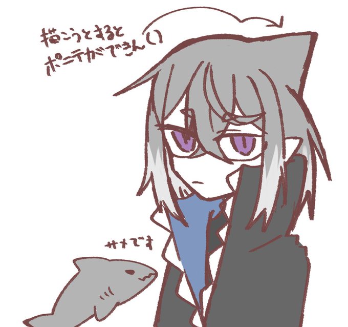 #イラスト 新しい猫と髪型変えたサメのrkgk