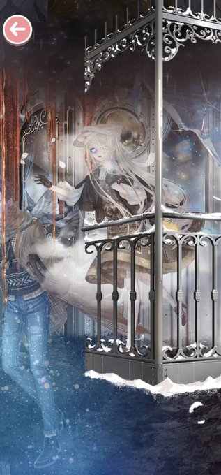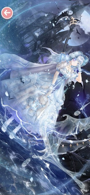 こちらは今回の復刻ガチャの青カーテンめちゃくちゃ使えるよ❗って事を伝えたいだけの販促ツイです。 ふわっとした柔らかい青が幻想的な雰囲気で実に良きです。 #ミラクルニキ