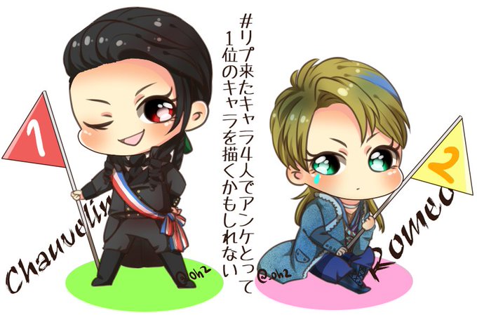 #リプ来たキャラ4人でアンケとって1位のキャラを描くかもしれない 描きました!1位のショーヴランだけにしようかと思いましたが、折角なので大接戦の後僅差で2位のロミオも一緒に・・。アンケートに答えてくださった皆さまありがとうございました!♡