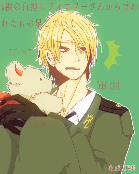 ♡裸の自担にフォロワーさんから言われたもの足していく テディベア 軍服 手袋 でした!ありがとうございました!