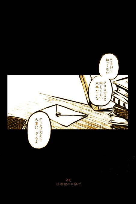 @sousakuTL クリスマスといったら前に描いた謎の漫画がある。ファンタジーなキャラクターですが、場所がハンバーガーショップなのが自分でも謎。(旅する魔法使いと角人の会話を何となく描きたかった、という記憶だけある)
