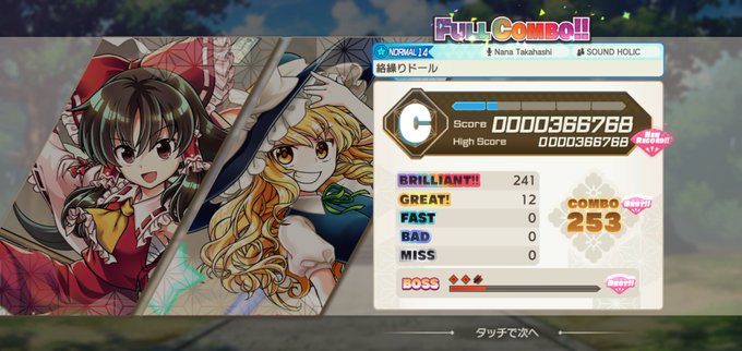 SOUND VOLTEXやっていたから似た感じで面白い。更に音ゲーなのに突然弾幕シューティングが入ってくるw さすが東方🤔