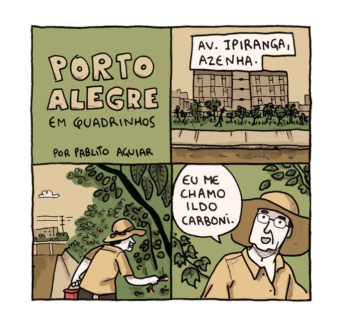 Hoje, na Greve pelo Clima, me lembrei dessa entrevista que fiz com o Ildo Carboni. Ele mora na Av. Ipiranga, em Porto Alegre e plantou mais de 180 árvores de 80 tipos diferentes de frutas. Um exemplo! O quadrinho é de 2018, em um outro formato, mas vale a lembrança. (Segue o fio)