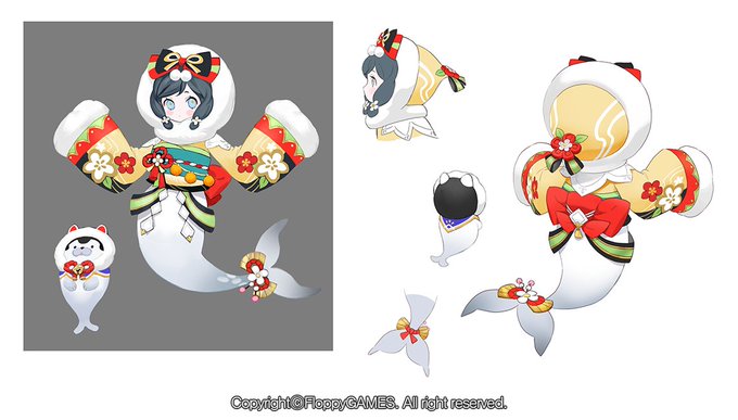 크로스크로니클Xross Chronicle 새해 업데이트 공개되어서 올려봅니다! 한복 패왕(하오)과 기모노의 겨울인어(세드나)디자인했습니다~겸사겸사 #PortfolioDay 도 붙여써야지 저작권은 플로피게임즈에 있습니다.