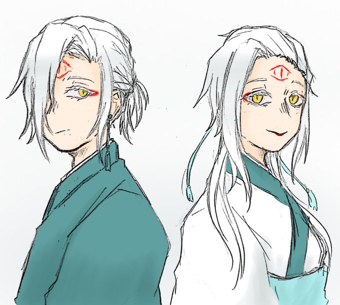 #ペチ工房 いい双子の日らしいので(1枚目) 2枚目は双子の父親(右)と、護衛時代の能力を使ってる紀惠(左) 双子の姉は 白雪(しゆ) 双子の弟は 白(あきら) 父親は シロサワ