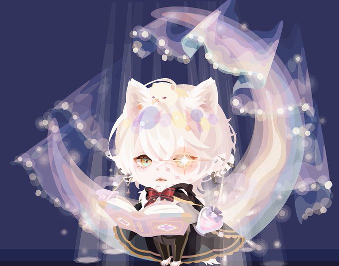 人狼の少年は魔法使いに命を助けられた。感銘を受けて弟子入りし、日夜魔法の勉強に励んでいる〜的な✨頭の上の使い魔は最近一匹もらったところ( •̀ .̫ •́ )✧ #pecolonian