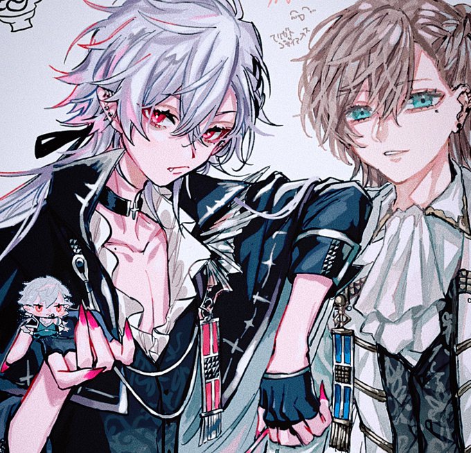 一昨日の絵チャのくろのわ合作🖤 かっこいいくずのお隣にお邪魔してきた!のわ衣装いっぱいあるから合作楽しい🤤 くず▶︎しぼおりさん なえ▶︎さいなんじ