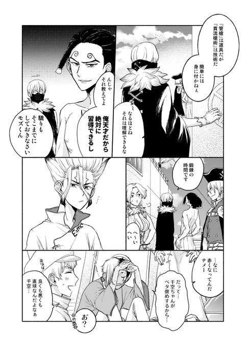 千ゲ(未満) ゲの事を自覚なくベタ褒めする千とストレートに褒められて赤面するゲ
