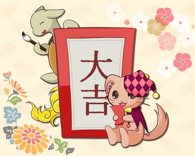 依里とピョーがGIFアニメで運勢を占います。 色を統一しなかったせいでゲーミングおみくじになってしまった…