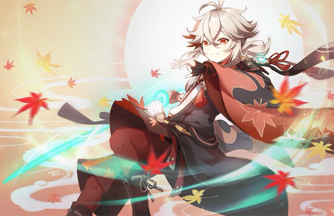 Someone hold me omg this art!!!! KAZUHAAAAAAAaaaaaAAAAAAaaaaa I love the anemo characters in this game....I am weak....I love them all......