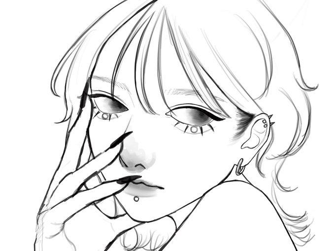 ツキちゃん(@___nebula02 )の線画塗らせて頂いた〜❗️🤍 めちゃくちゃ顔が良くて小物も全部可愛くてなにより線画が綺麗で丁寧で色塗るの楽しすぎた😽 ツキちゃん素敵な線画をありがとう〜❗️🤍