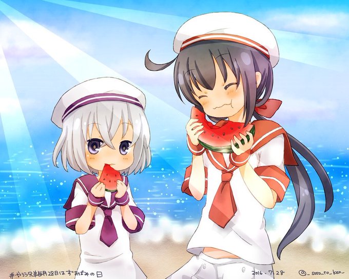#やろう兄弟毎月28日はずおばみの日 さっき食べたスイカ美味しかった(描いてたら親がスイカ食べる?ってry) 8/10が待ち遠しいですー!イラストの服は先月描いたものを使ってます、()