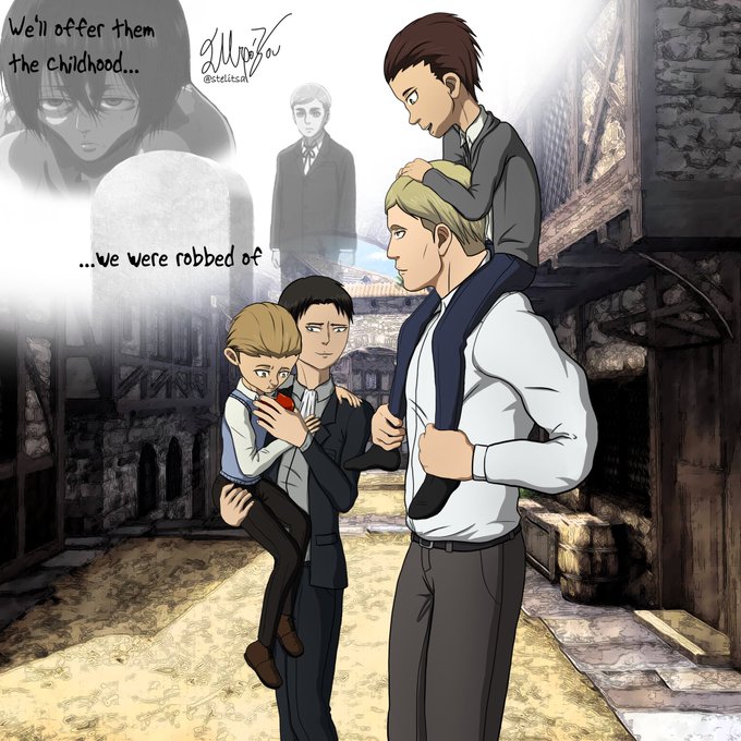 Did I really just make fanart of another person's AU? Yes. Yes I did. But I can't help it, @marjelldoodles 's Eruri dad's AU is just so lovely it's living on my head rent-free. 😂💖