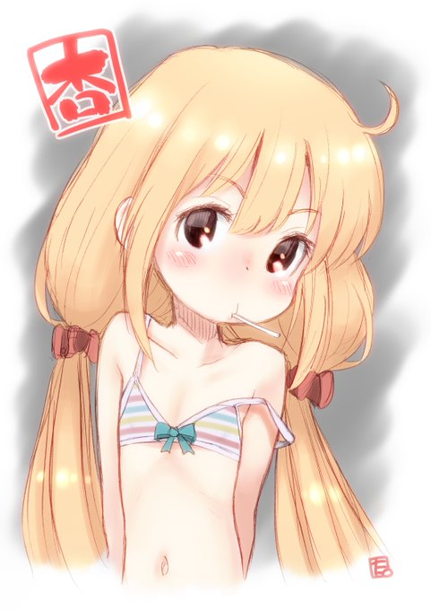 日付が変わってから気付いたので過去絵を改変されたうるし先輩。 #ビキニの日