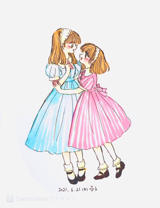 水色とピンク 夏ワンピ