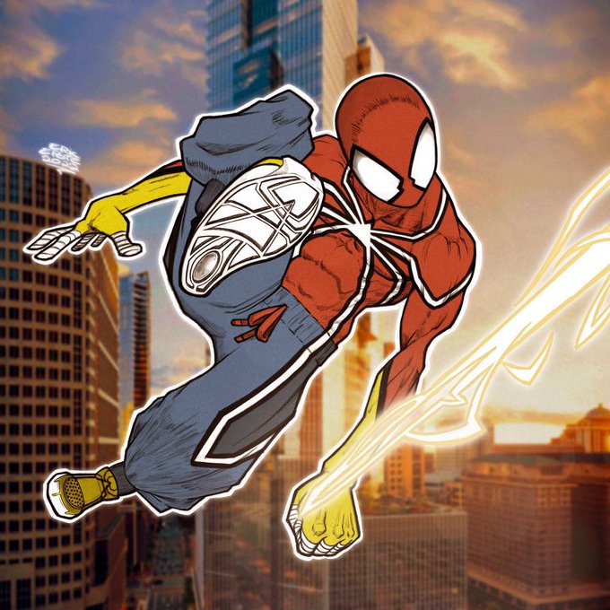 I googled it throughly and I haven't found a single picture of any Spiderman wielding a sword made out of electricity or using electricity to swing around