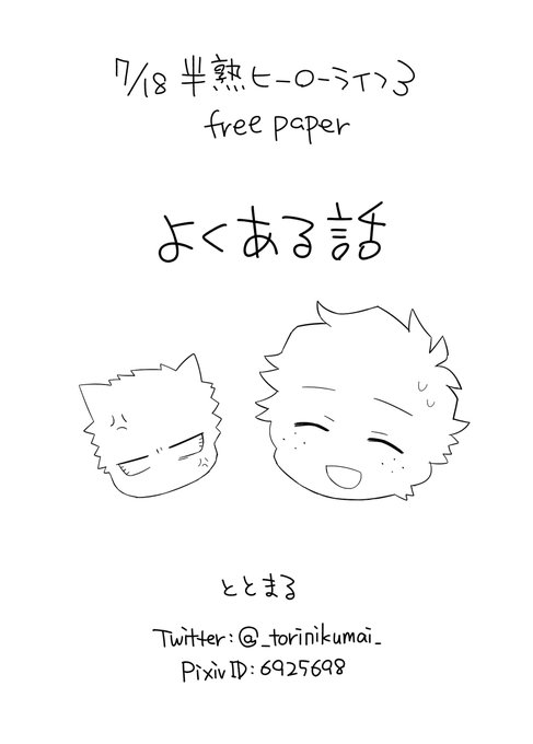 明日の半熟ヒーローライフ3参加してきます!スペースは【Iんとか-39】になります。無配の四コマ漫画もあるのでよかったらお越しください…!