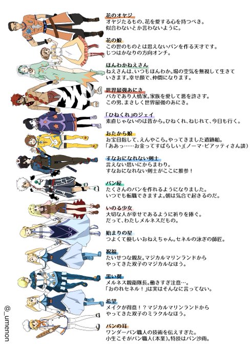 おまけに、信じられないくらい適当なキャラクター紹介も載せておきますね。頒布したコピー本には、まとめのほかに、今までに描いたレジェ愛を詰め込んだイラストたち、レジェオンリー即売会の時の景品に使用した絵なども載せていました。それは手に取ってくださった方のみで、、^^