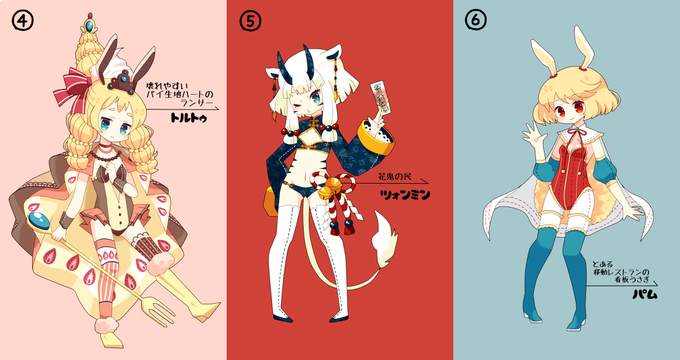 ゆーらさん【@kkk__yr】、桜屋かのんさん【@kanon_sakuraya】、登別さん【@kenkourando】、豆ありさん【@iimame】、みーふぁさん【@miifaa】にうた風キャラデザ描いてもらったぞ!