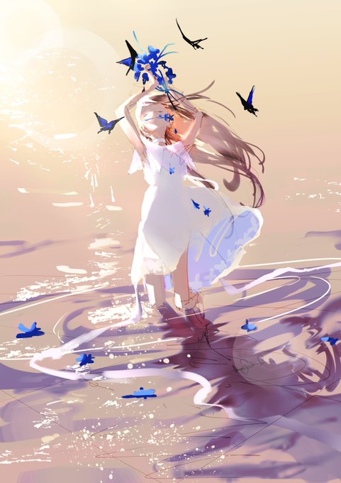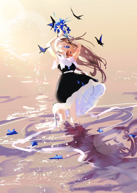 左線画さきっぽ 色塗りふーりんしゃん 右線画ふーりんしゃん 色塗りさきっぽ で線画交換したぁ!普段と全く違う塗りしましたが、めちゃくちゃ楽しかったです そしてみてこのふーりんしゃんしゃんの塗りえぐいて、透明感うーーーーあうあう😭🙏😭すき