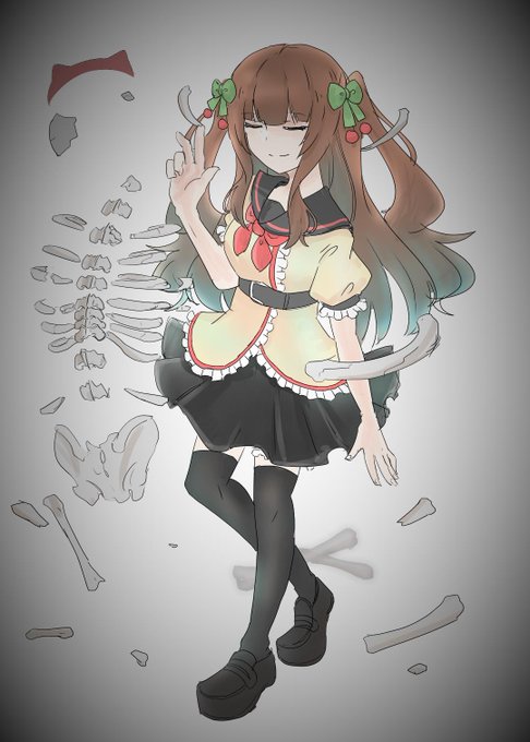 白いケサランパサランみたいなぽんぽんをつけたちえりちゃん #花京院ちえり #ちぇり絵