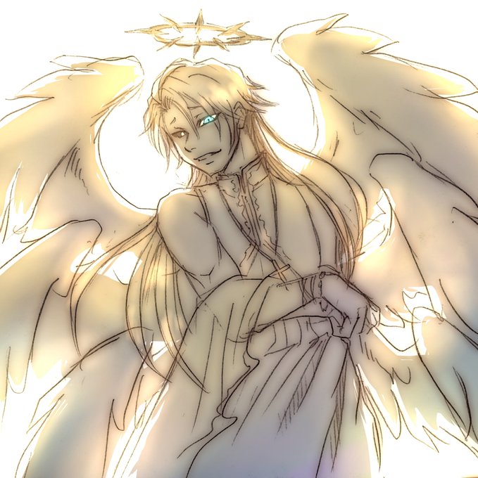 ⚠️イメズ・受肉注意⚠️ 即席だから雑だけど… 受肉6枚羽天使ガラク👼🧪 ジャッ君がロングだって言ってたからロングヘアーにしたった。 下はコレ、ギリシャ神話みたいなあのヒラヒラしたスカートみたいなやつね(語彙力)