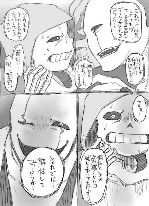 ガスターvsマーダー その4(おまけのおまけ) 帰宅したマーダー君、継続組でこんな会話してたら可愛いなぁっていう妄想。このトリオ、旧ラボサンズ君と全員繋がってると思うと胸熱すぎてすき🤤💕