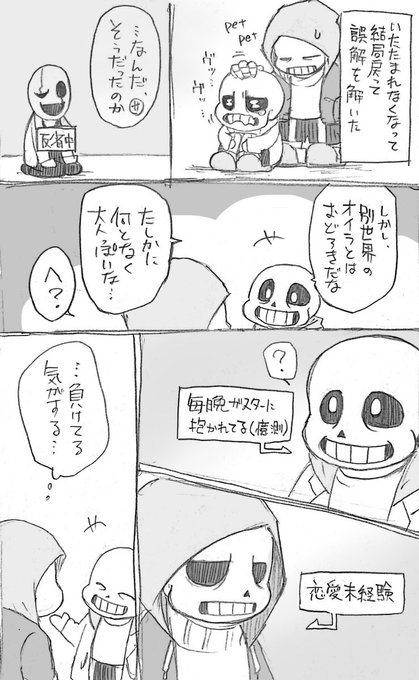 ガスターvsマーダー その3(おまけ) 和解しました😊 オリジナルの前だといいお兄ちゃんしてくれそうなマーダー君。(妄想)