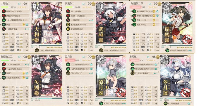 そういえば自分が編成探した時に甲難易度の伊勢入り編成がほとんどだったので一応自分の編成を貼っときます