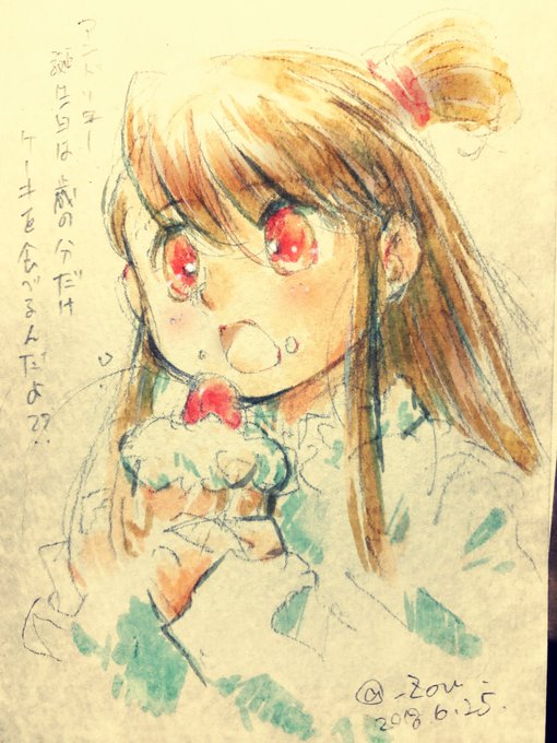 アンドリュー、誕生日は歳の分だけケーキを食べるんだよ!…というアッコ誕生日絵を描きました。ひさしぶりの水彩(ペン)楽しかった! #lwa_jpn