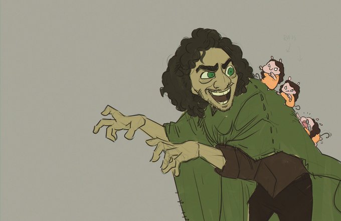 Kofi sketch request number two is @ACABeherit 's galaxy brain idea of that shot of bruno with rats on his back but instead of actual rats it's chibi versions of my sona: