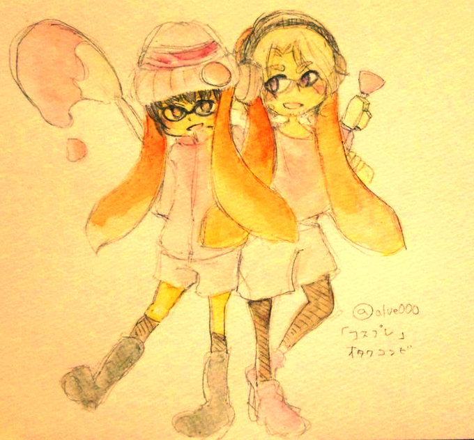 @hetaknb #APHコンビ版深夜のお絵描き60分一本勝負 ※女装?注意 オタクコンビでコスプレ ス_ラトゥーン風