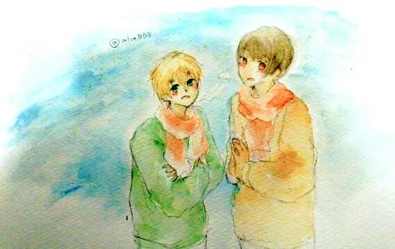 #APHコンビ版深夜のお絵描き60分一本勝負 八重歯兄弟で「シャボン玉」です。 この2人はわきゃわきゃ、はしゃいでて欲しい気持ちになります。