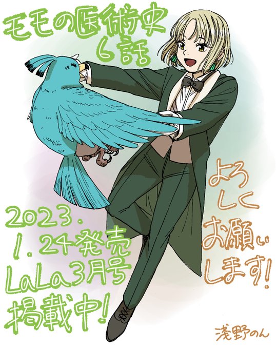 1日遅れましたが、今月24日発売LaLa3月号に#モモの医術史 掲載させて頂いてます!李という謎の男が出てきますが、私はこいつが大好きです。話数を追うとどんどんハマるキャラだと思っています!ポポが手紙を読んでいるシーンあるので探してみてね!