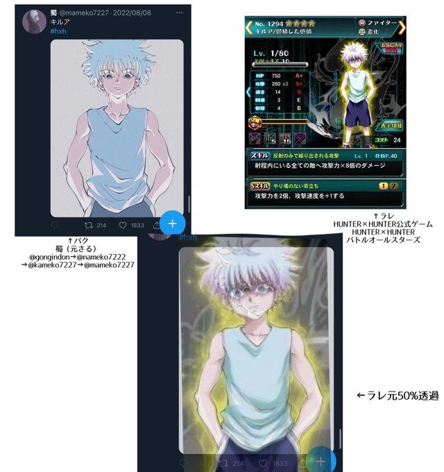 蜀 @mameko7227(元kameko7227)h×hトレパク問題。いただいた情報を元に検証しました。