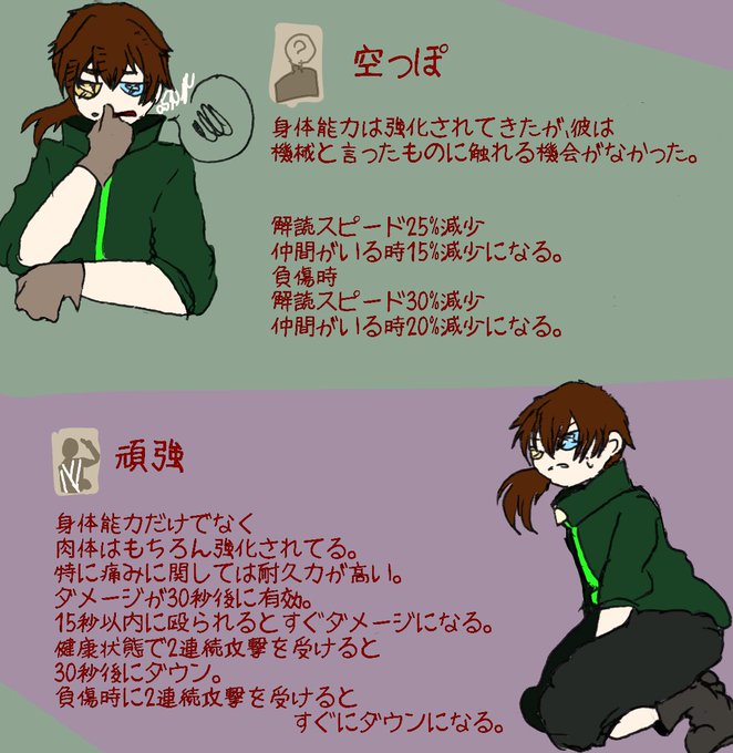 #フォロワーさんからイメージもらって自分をサバイバー化する #第五創作 できましたー!!!!! 頭がちょっと残念だけど運動能力は高い子!!! 4枚目は練習(長身描くのムズい)