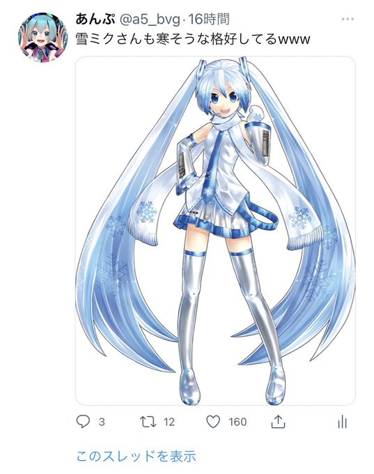 雪ミクさんも寒そうな格好してるwww