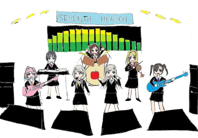 新人バンド風 ボーカル久川凪・久川颯、ギター夢見りあむ ベース砂塚あきら、キーボード白雪千夜 バイオリン黒埼ちとせ、ドラムス辻野あかり