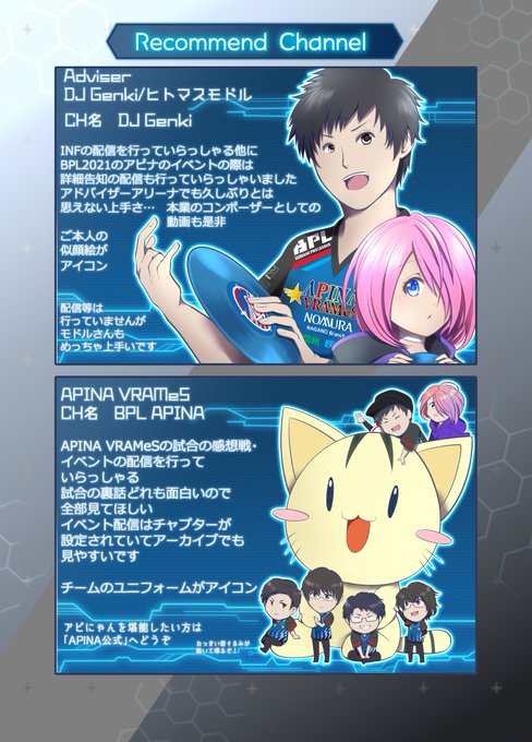 今作CHのコンセプト「チャンネル」になぞらえてアピナのアドバイザー・チームのyoutubeチャンネル紹介を描きました(2/2)
