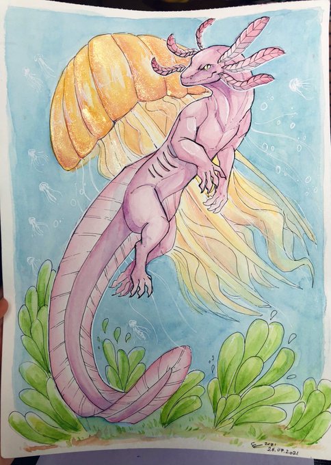 #artistsontwitter #traditionalart #Watercolour #axolotl #jellyfish