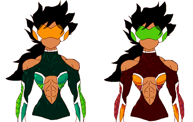 thinking about making the blue/ teal darker and her body suit a green shade