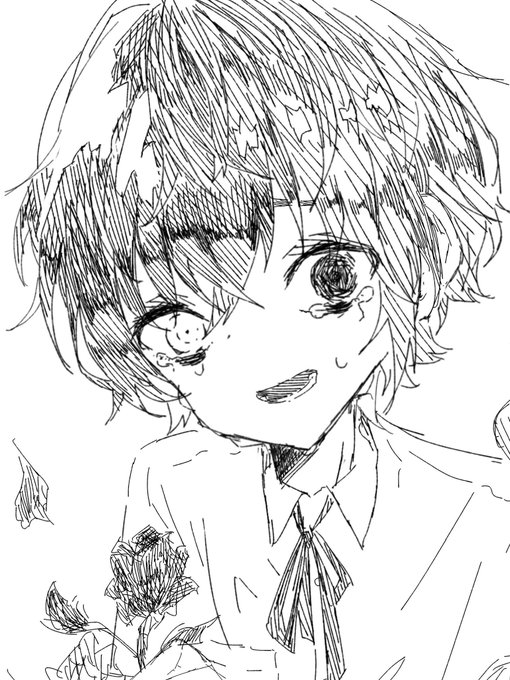 因みにイラストの花は 1枚目が折れた薔薇 2枚目がニゲラ(似てない) 3枚目がアイリス って感じです!