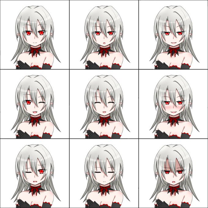 おまけの表情差分一覧。 見た目少女でも中身は大人な面を出したかった。