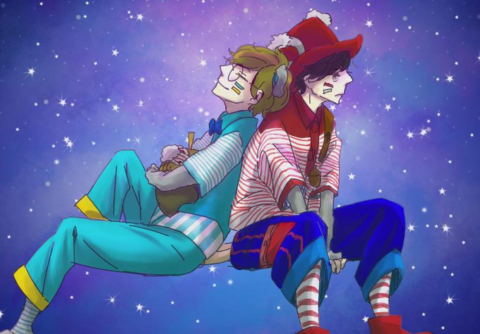 @moja_pietro アミナさんアミナさんアミナさんんんんんんお待たせしましためっちゃお待たせしましま!!!すみません!! ぶっくすたいしょう背中合わせやつ!!いかがでしょうか...!? リクエストありがとうございました!!