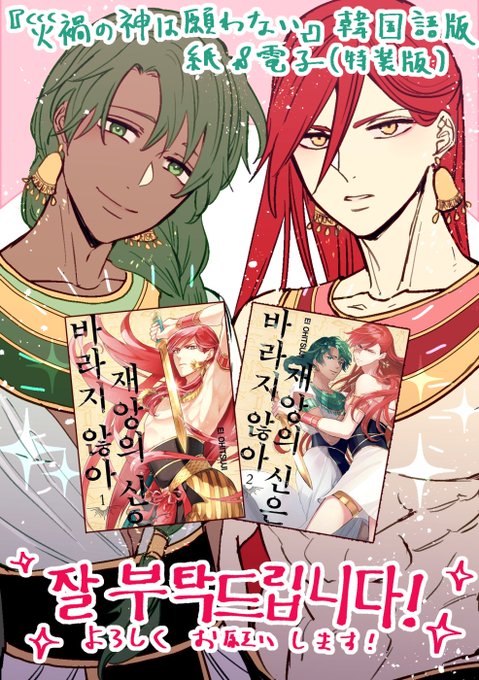 今月30日に『災禍の神は願わない』韓国語版(紙)が1、2巻同時に発売されるそうです!やったー🎉電子は1月中らしいのですが、担当さんのおかげで特装版の方が翻訳されることに!こちらも嬉しすぎる✨はやく実物が欲しいー!