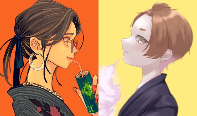 浴衣向き合いで一緒に描いてもらったもの🤗✨ @0_12ml 大きさ合わせたので少しトリミングしちゃったごめん💦💦